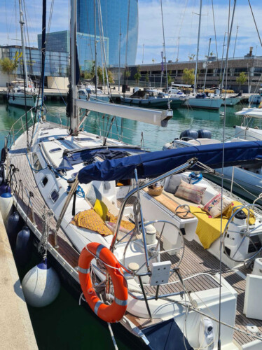 Discover the beauty of the Mediterranean Sea aboard Sun Odyssey 45, a luxurious sailboat available for rent at Marina Vela, Barcelona. With a capacity of up to 12 guests, this vessel is perfect for a fun-filled day with family or friends.