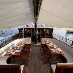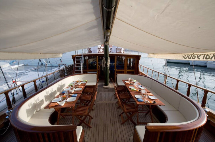 Boasting a stunning teak deck and wood-dominated interior, Karya offers a warm and inviting ambiance. With a capacity of up to 80 guests, this gulet is an ideal choice for hosting unforgettable events.