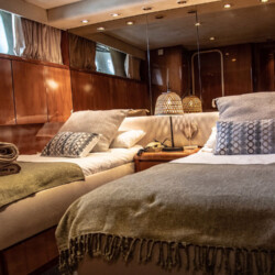 - 4 guest cabins equipped with a shower, toilet, climate control system, TV, and audio system.
