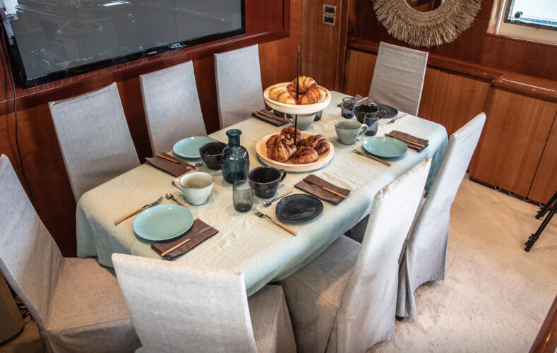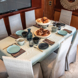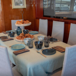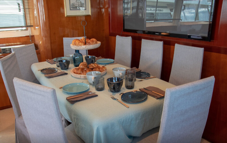 Snacks and banquet dishes are prepared by a professional chef directly on board the yacht in the fully equipped galley. The menu is based on fish and seafood dishes.