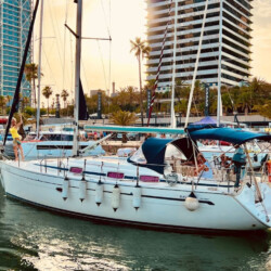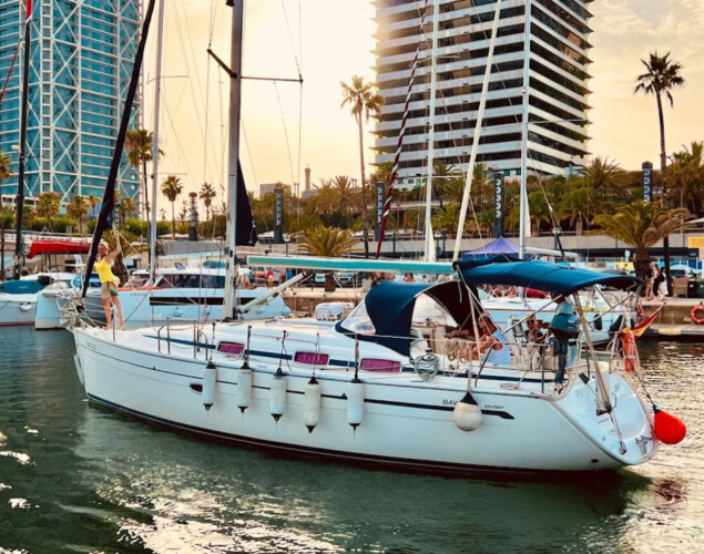 Rent our stunning Bavaria Cruiser 37 Sailing Yacht in Barcelona, accommodating up to 7 guests plus a skipper. Experience unparalleled comfort and style on this teak-decked beauty, exclusively chartered with a commercially licensed, owner-skipper.