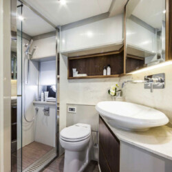 The Absolute 52 FLY is also packed with exciting entertainment options to make your experience unforgettable. Guests can enjoy a BBQ, coffee machine, deck shower, DVD player, freezer, ice machine, microwave, outside speakers, paddle board, radio CD, refrigerator, seabob, snorkel sets, towable tube and TV.