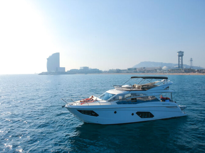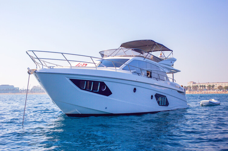 This yacht is available for rent with a captain, and the minimum rental time is 2 hours. The Absolute 52 FLY is the perfect vessel for an intimate and exclusive experience on the water, with breathtaking views of Barcelona's stunning coastline.