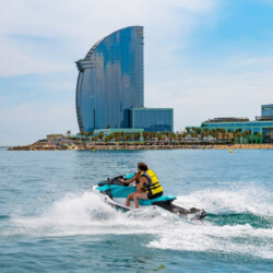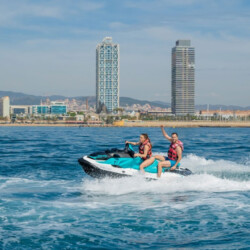 Cada moto de agua tiene un biplaza, por lo que siempre puedes compartir la experiencia con alguien. Si ya has montado en una moto acuática, puedes surcar las olas de forma independiente y disfrutar del paisaje de Barcelona mientras navegas por el mar Mediterráneo.