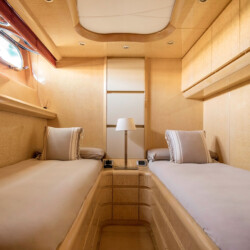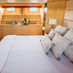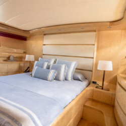 el yate «Maiora 24» es bastante impresionante en tamaño y tiene una gran demanda debido a sus especificaciones técnicas. El barco ofrece alojamiento cómodo durante la noche para 6 invitados en 3 camarotes: un camarote principal, un camarote VIP doble y un camarote de invitados con dos camas individuales. Debajo de la cubierta, debajo del puente del capitán, hay una cabina doble para la tripulación.