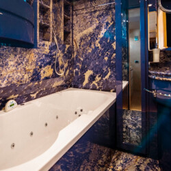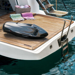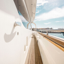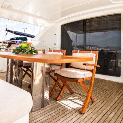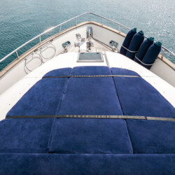 También hay una zona de relajación y para tomar el sol al aire libre en la sección de proa del yate. En la sección de popa, hay una plataforma de baño retráctil.