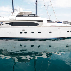 Ante usted se encuentra un yate de clase premium exclusivo y prístino con 3 cabinas dobles, un diseño único y un espacioso flybridge. Tiene capacidad para 12 personas y tiene una longitud de 24 metros y una anchura de 5,8 metros. Disponible en alquiler con tripulación en Barcelona.