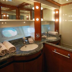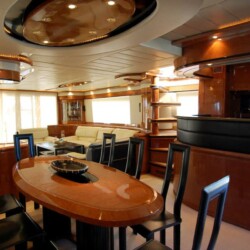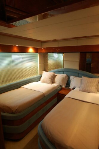 El yate cuenta con cuatro cabinas que pueden acomodar hasta ocho invitados, con cuatro baños en suite para máxima comodidad y privacidad. Los interiores cuentan con abundante madera de secuoya, lo que agrega calidez y lujo al diseño general.