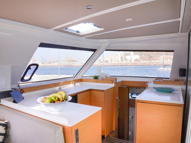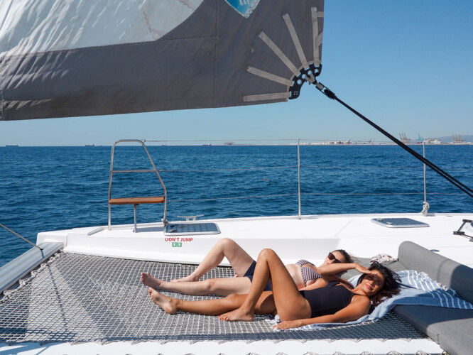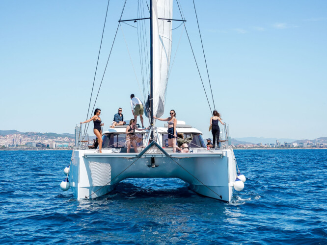 Le catamaran Nautitech 40 Open à Barcelone, allie espace et luxe. Pouvant accueillir jusqu'à 30 personnes en croisière de jour, il est parfait pour une variété d'événements. Le grand pont arrière semi-ouvert avec un salon et une table, ainsi qu'un vaste filet de proue sont idéaux pour bronzer, socialiser et profiter de la vue sur la mer. Ce catamaran est excellent pour les événements d'entreprise, les anniversaires, les réunions de famille ou une journée de détente entre amis. Son grand espace et son confort rendent toute occasion inoubliable.