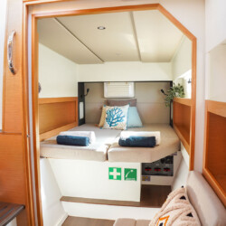 Inclus : TVA 21%, capitaine, marin, carburant, bar ouvert avec eau, boissons non alcoolisées, bière, vin et cava, glacière avec glace, collations gratuites.